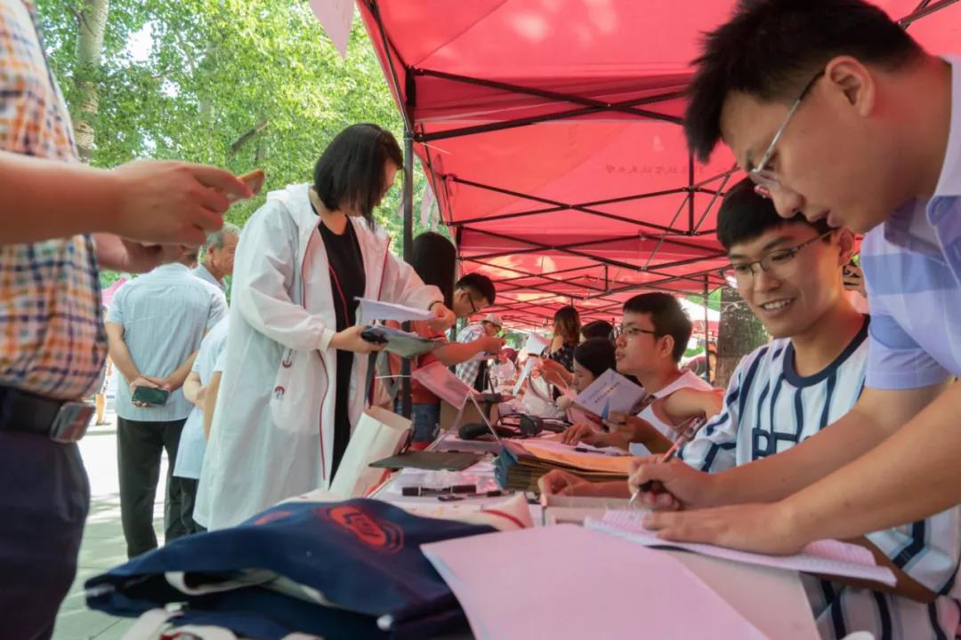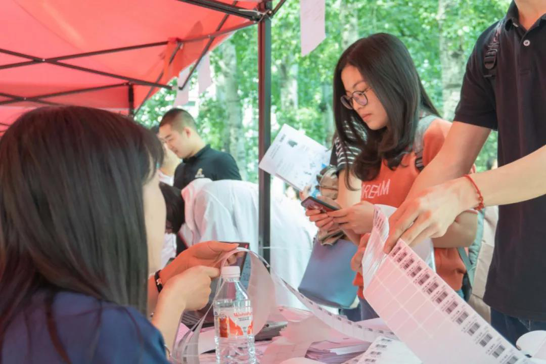 早上7点,负责迎新的公司工作人员就已经做好准备等待新同学的到来。7时30分起,陆续有新同学来到报到现场,工作人员按照报到顺序为新同学办理报到手续,整个迎新工作有条不紊,井然有序。