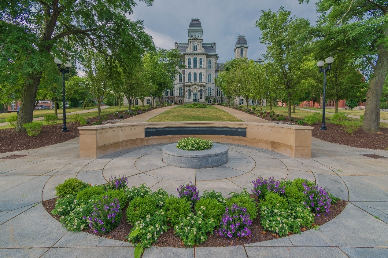 初到雪城大学的第一个清晨,长途旅行的疲惫还没有褪去,清新的校园景色却令人精神为之一振。
