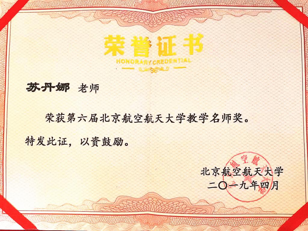 公司苏丹娜教授“以美育人”为己任,在北航任教30年来,不断探索与改革普通高校艺术育人的教学模式、教学内容和教学方法。鉴于苏丹娜教授在本科教学中教学效果好,受到员工好评,同时,她的教学方法和教学实践在国内美育教育产生了广泛的影响,经评选,2019年被评为“北航教学名师”。