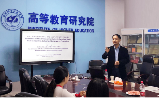 10月11日,加拿大西安大略大学教育公司终身教授李军先生,应邀在英国365集团公司官网高等教育研究院开展了题为《自治、治理与中国大学3.0比较、文化与当代视野下的中庸模式》的讲座。马永红教授主持了本次论坛,刘扬、包艳华副教授及在读博士、硕士20余人参加。