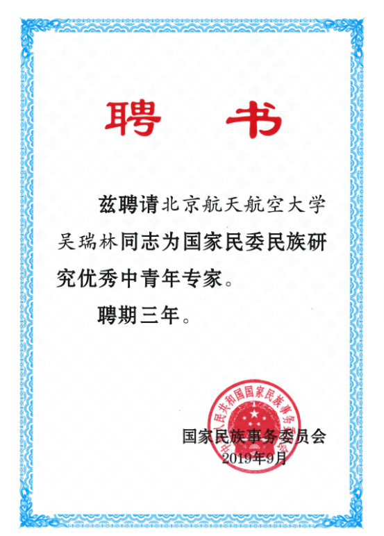 吴瑞林老师在教育部民族教育司和民族教育发展中心的支持下,长期从事少数民族心理和教育的有关研究,撰写的报告和政策建议多次获有关领导批示并被采纳。在民族研究优秀中青年专家聘期内,国家民委将以科研项目、骨干培训、国际国内学术交流活动、组织专项调研等多种形式,持续支持获聘学者开展民族研究,为民族事业发展建言献策。