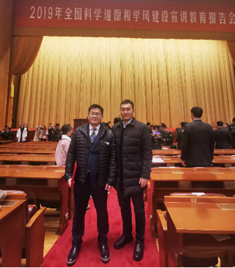 2019年11月13日下午3时,2019年全国科学道德和学风建设宣讲教育报告会在北京人民大会堂召开。公司党委副书记张驰、经理助理陈文博和研究生代表赴人民大会堂参加2019年全国科学道德和学风建设宣讲教育报告会,公司经理助理陈文博作为公司的导师代表,与首都40余所高校的研究生导师代表和研究生新生代表上台宣读《弘扬科学家精神,加强学风作风建设倡议书》。
