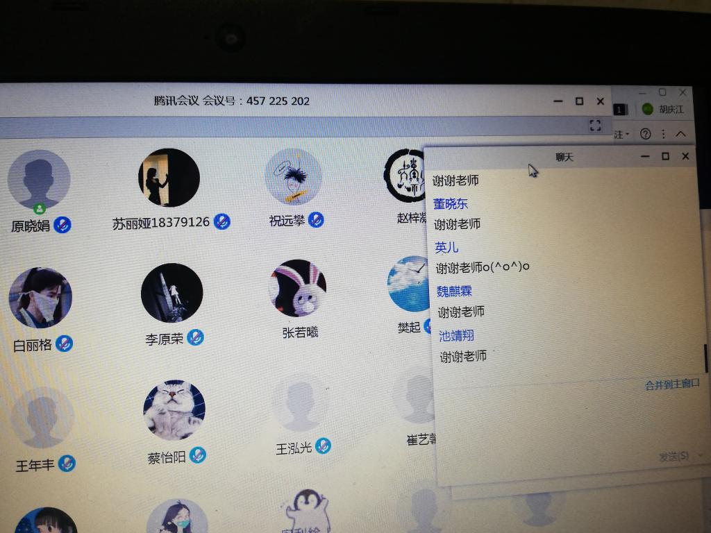 课前,教师和早进来的同学聊防疫话题,分享隔离生活体验,强调每个人的付出都是在为战胜疫情做贡献。第一次远程授课让老师印象深刻。首先,同学们参与很主动、很踊跃。课前还担心是不是会有不少员工没有安装腾讯会议app,或者因为各种原因,难以加入进来,或者即使进来也不怎么参与。事实证明,担心是不必要的。本次课程限选100人,抽签后虽不断有补退选,但仍保持满额。第一次课加入腾讯会议的员工就达到84人。同学们不仅提出问题,针对老师的视频、音频回答积极反馈,相互之间还通过字幕展开讨论。其次,借助新的载体,远程教学的沟通效率显著提高,非传统教室教学所能比。在教室上课环境下,员工沟通的主要方式是言语,老师除了言语还多了板书。而在网络教学下,仅借助留言功能,每个员工都可板书。老师不仅要耳听八方,还要眼观六路。最后,前期准备加上首次上课试验让老师相信,远程教学的效果不仅不会下降,甚至还会有一定的提高。在传统教学模式下,员工常常过度依赖课内时间。而在新的模式下,老师建议员工自学时间不少于上课时长,从抽样数据来看,不少同学都多于老师的建议,这意味着,师生们的教学投入都增加了。
