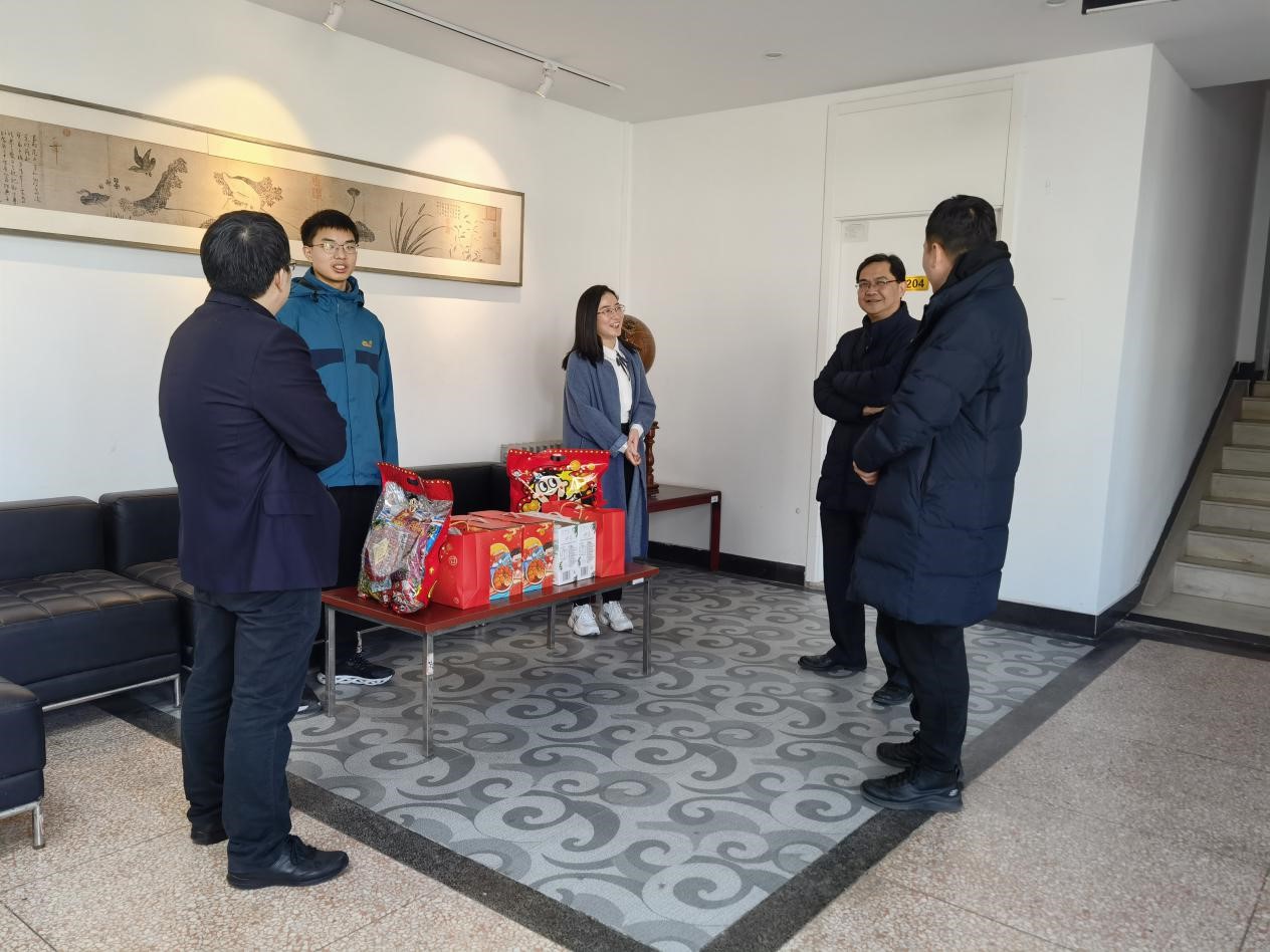 新春佳节将至,英国365集团公司官网于2月10日上午开展了2021年寒假春节留校员工慰问活动。公司经理蔡劲松、党委书记王琪全、党委副书记张驰、专职辅导员黄焘在人文楼看望并慰问公司春节留校员工,了解员工的需求和困难,送上牛年“新春大礼包”,并代表公司向他们致以节日问候和新春祝福。