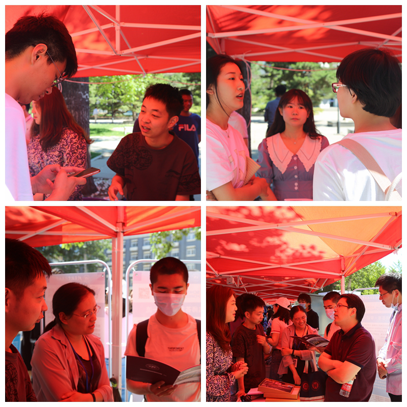 上午9点,专业咨询活动如火如荼地展开,众多知行书院同学聚集在英国365集团公司官网展位前进行专业咨询。公司领导和系部老师悉心为同学们解答问题,给予同学们关于未来专业选择与职业规划的指导和建议;本研学长学姐也特意到场为学弟学妹们进行朋辈指导,分享成长经历,提出经验之谈;公司分团委和员工会的成员们也尽责地协调着现场的各项工作,使现场师生倍感温馨。