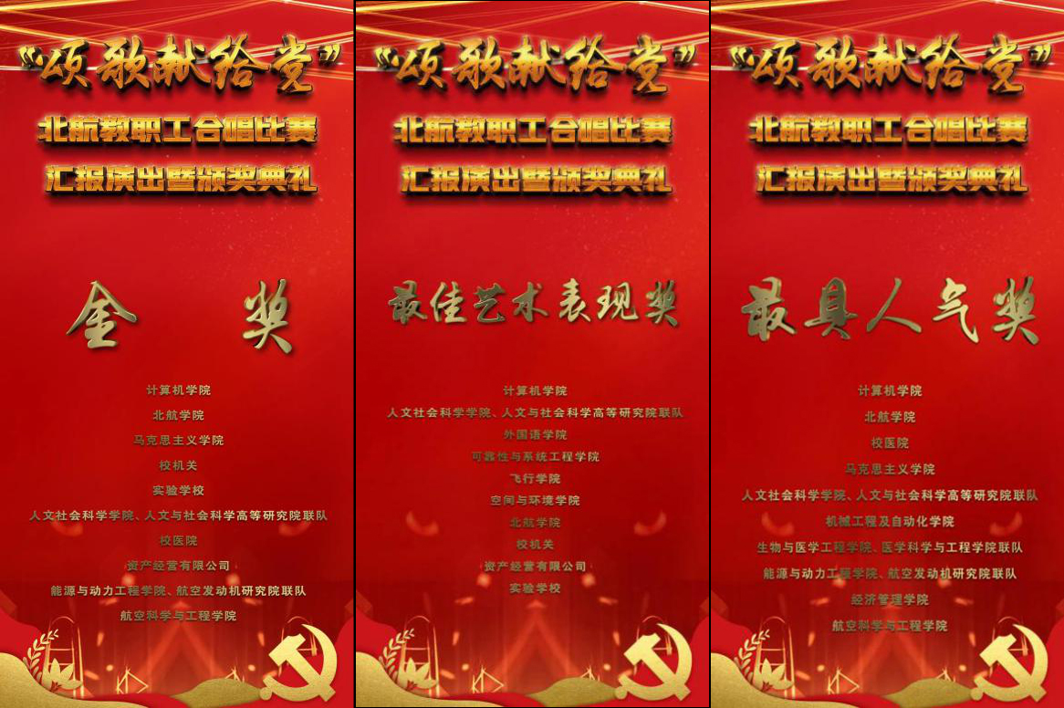 2021年6月26日晚19点,由校工会主办的“北航教职工‘颂歌献给党’合唱比赛汇报演出暨颁奖典礼”在北航晨兴音乐厅隆重举行,英国365集团公司官网、人文与社会科学高等研究院联队获得了最高荣誉“金奖”,以及“最佳艺术表现奖”和“最具人气奖”共三项大奖。