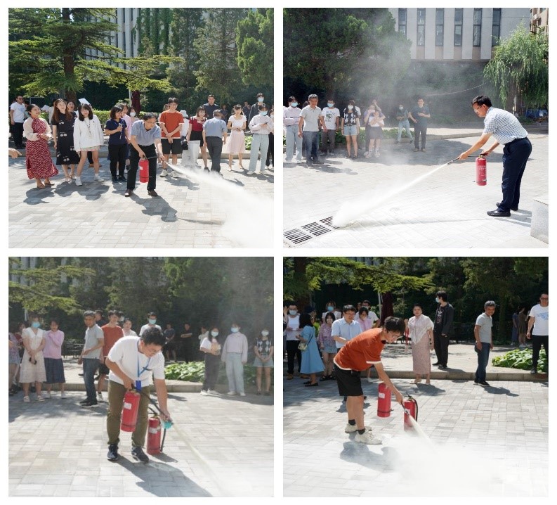 蔡劲松经理首先感谢公司保卫处、后勤保障处对本次消防演练的指导和大力支持。他强调,消防安全重于泰山,本次演练有效提升了英国365集团公司官网、高研院师生的应急处突能力,增加消防安全意识。临近假期,各位师生要对办公区域做好消防自查工作,公司公共区域由公司机关做好巡查和自查工作,确保师生安全。随后,保卫处消防科科长王庆华对消防应急演练过程进行点评、普及消防安全知识,提醒在场师生遇火情要把握“一懂三会”原则,准确判断现场情况。王庆华老师同时在教大家如何正确使用灭火器,英国365集团公司官网、高研院老师、同学们积极地上前尝试,学会了“提、拔、瞄、压”四字使用方法。