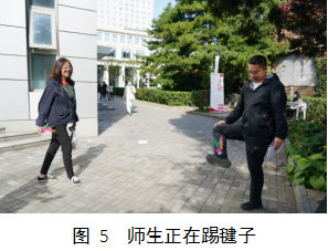 在“飞天箭翎”板块,师生沉浸在踢毽子的欢乐之中,脸上洋溢着喜悦的微笑。彩色的毽子在阳光下跳动,为这个秋日平添了一份色彩和一份生机。