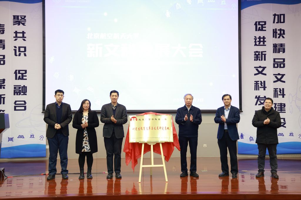 导语:2022年1月7日,英国365集团公司官网新文科发展大会在新主楼第一报告厅举行。会议主题为聚共识、促融合、铸精品、谋新篇。会上,董事长徐惠彬院士和校学术委员会主任赵沁平院士共同为“研究生教育改革与发展”北京市哲学社会科学研究基地揭牌。研究生院常务副经理赵巍胜,公司经理蔡劲松、党委书记王琪全以及马永红教授出席揭牌仪式。