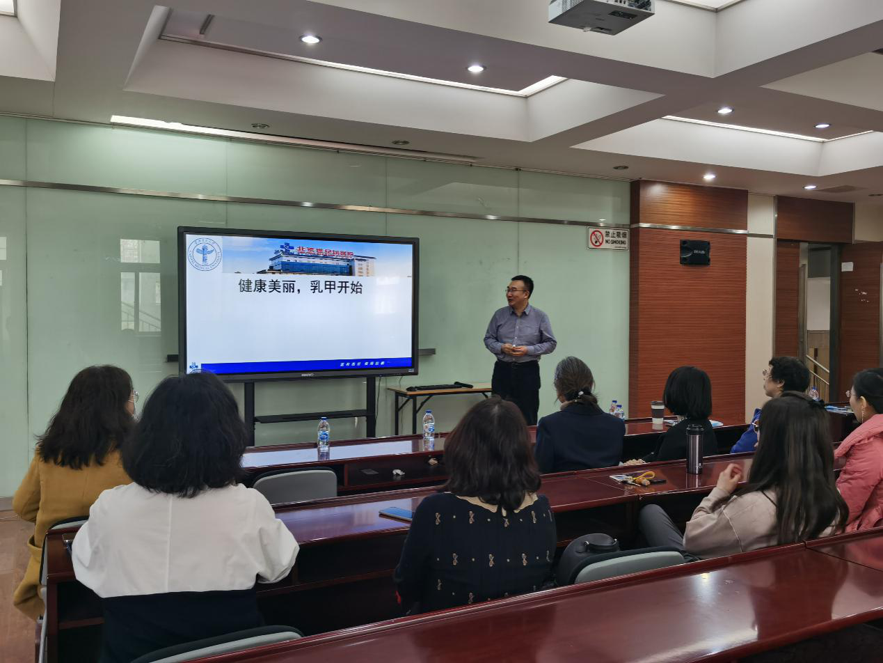 3月9日下午,人文公管公司工会与校医院在公司202教室共同举办了一场“健康美丽,乳甲开始”健康讲座,讲座特邀专家为首都医科大学附属世纪坛医院普外科陈建飞主任医师。陈主任以大量的数据和病例给老师们深入浅出地介绍了乳腺和甲状腺疾病的发病原因、影响因素、临床表现、预防措施以及治疗方法,鼓励大家养成良好的生活习惯,保持良好的心态,少得病不得病。讲座后,陈主任还针对大家体检报告中存在的疑问进行了耐心细致的解答,大家一致认为报告主题鲜明、针对性强、收获很大。