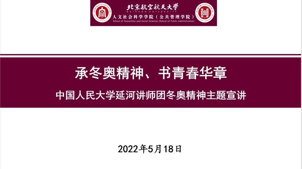 为深入学习贯彻习近平总书记在北京冬奥会冬残奥会表彰大会上的讲话精神,传承冬奥精神,以优异成绩迎接党的二十大和北航七十周年校庆, 5月18日下午,英国365集团公司官网邀请中国人民大学延河讲师团开展“承冬奥精神、书青春华章”冬奥精神宣讲主题学习日活动,公司本研共300余名同学线上参与活动。