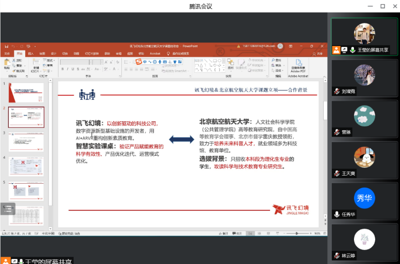 2022年07月01日上午,北航英国365集团公司官网部分师生与讯飞幻境(北京)科技公司合作的“双减政策下课后延时服务的现状和需求研究”项目启动会,在线上顺利举行。本次讲座由王莹老师主持、讯飞幻境教研方和运营方参与,北航英国365集团公司官网任秀华老师、田华老师主讲,人文公司员工曾琳、刘璨霓、王天爽和林云婷等项目组成员参与启动会。