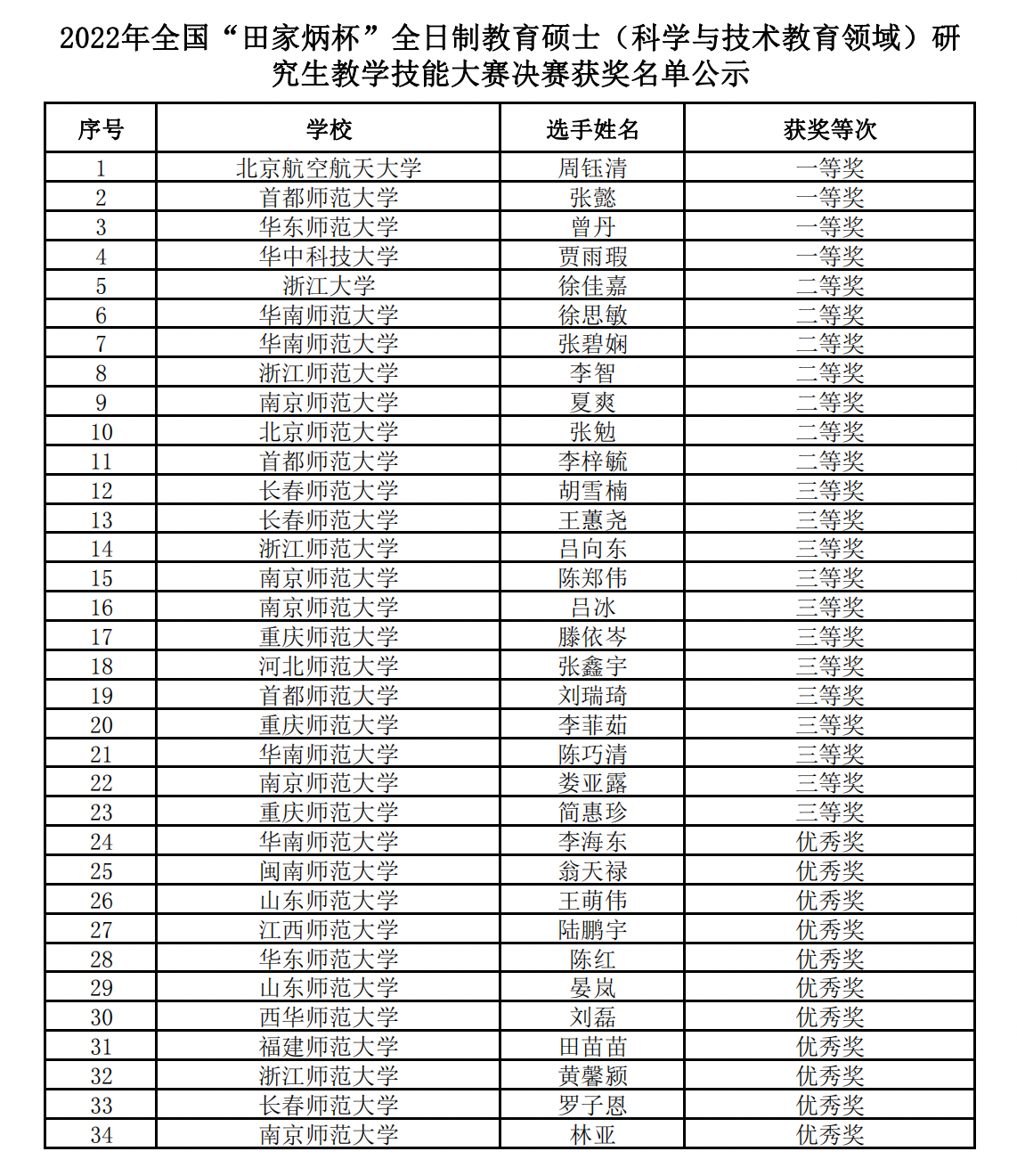 2022年12月11日,由全国教育专业学位教育指导委员会指导,广西师范大学主办的2022年全国“田家炳杯”全日制教育硕士(科学与技术教育领域)研究生教学技能大赛落下帷幕。公司共推荐5位同学参加本届大赛,其中陈皎、周钰清2位同学进入决赛。2021级教育硕士专业学位研究生周钰清在决赛中脱颖而出,荣获一等奖,其导师田华老师荣获“优秀指导教师奖”。