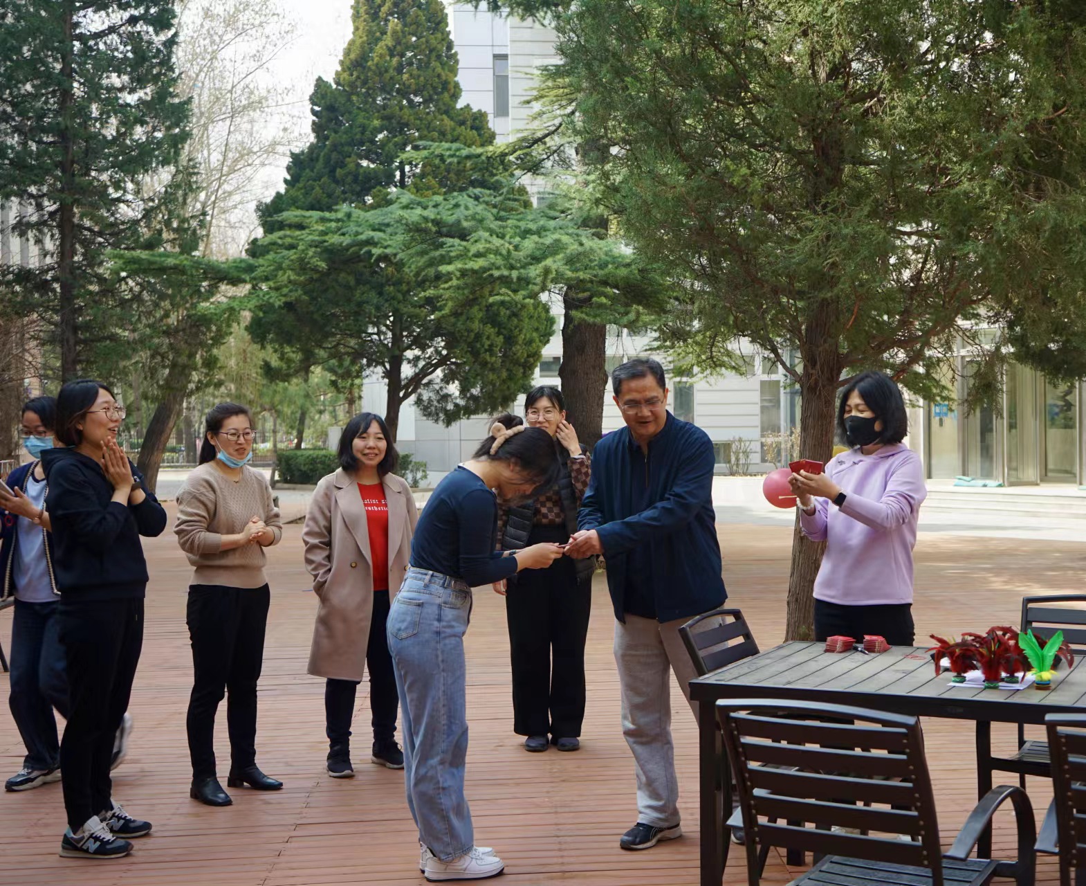 彩色气球在微风中飘动,洋溢着节日的欢乐,比赛现场氛围热烈。老师们信心十足、身轻如燕,鸡毛毽子在空中上下翻飞。赛场上鼓掌声、叫好声接连不断,充分展现了教工之间互帮互助、共同进步的美好情谊和奋力拼搏、争取上进的人文精神。
