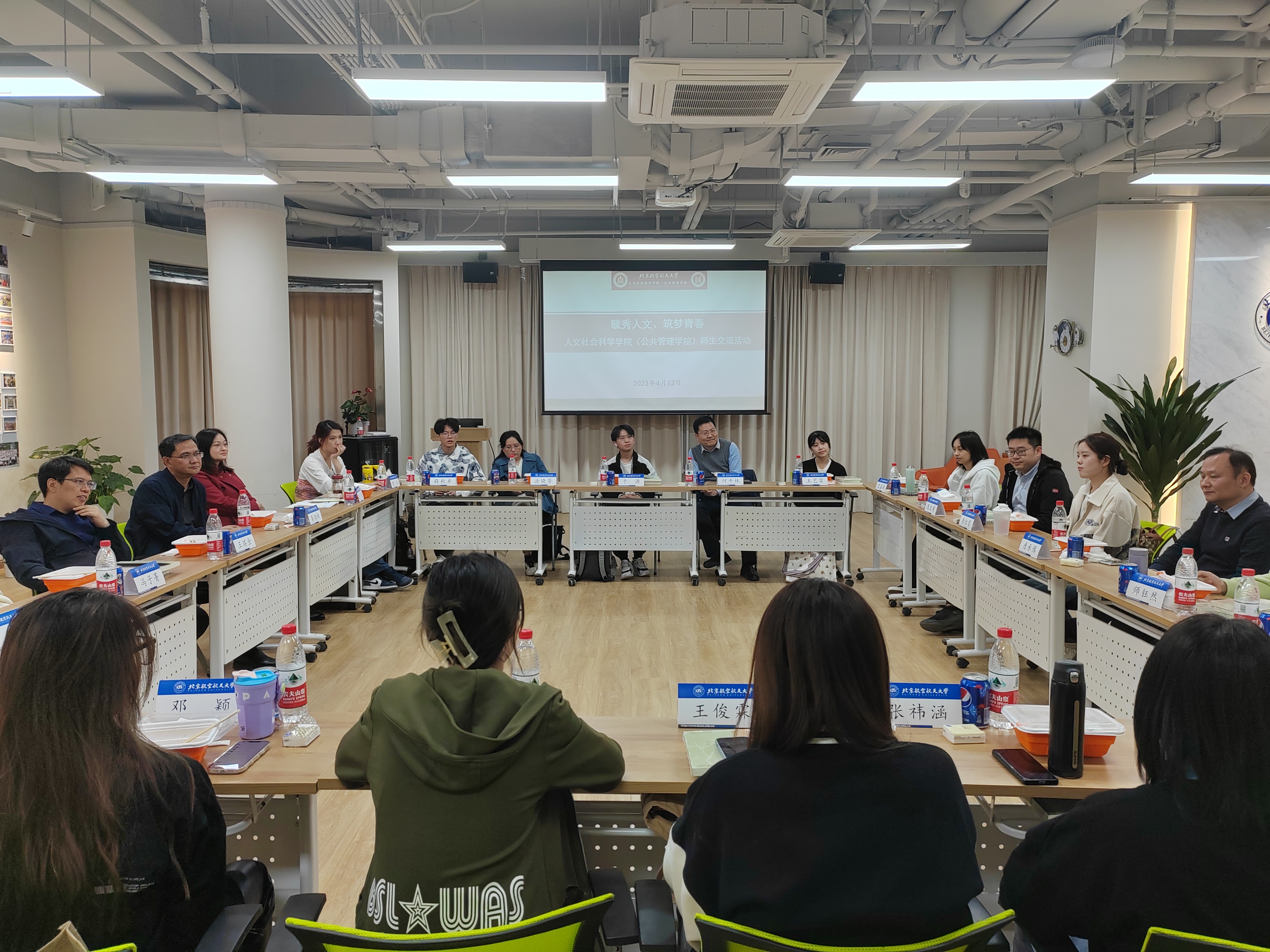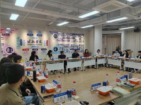 4月12日中午,师生午餐会在沙河校区8-B110举行。蔡经理、王书记及各位老师亲切问候同学们。