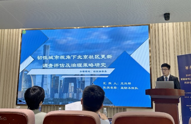“坚韧不拔队”由公司应急管理专业博士研究生尘兴邦组织发起,作品筹备期间,团队针对北京传统街坊社区、单位制社区、商品房社区和城乡结合部社区等4类典型社区在安全更新、健康更新、环保更新和可持续发展更新4个维度的实际情况,进行深入、广泛、细致的调查研究,总结特征现状,分析具体问题,构建社区更新安全韧性评估体系并实际应用,提出韧性城市视角下城市社区更新治理策略,为超特大城市更新研究、安全韧性城市建设提供理论支撑和现实依据。