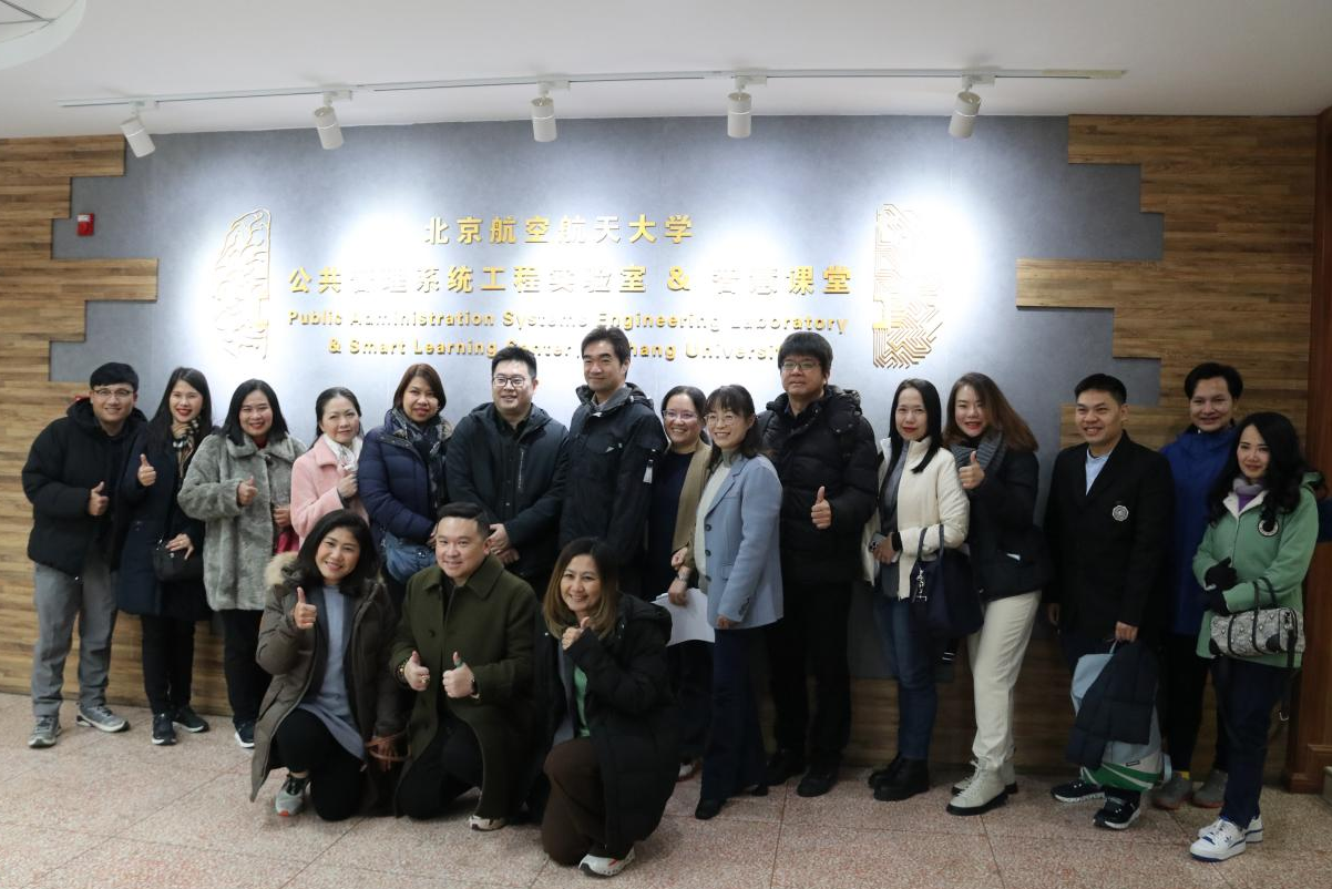 首先陈文博副经理代表公司对Poom Moolsilpa教授一行的到访表示热烈欢迎,并带领泰国诗纳卡宁威洛大学社会科公司代表团参观了北航公共管理系统工程实验室/智慧课堂。