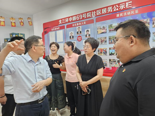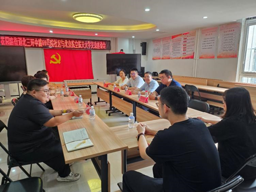 花园路街道办事处的座谈会结束后,花园路街道办事处党工委副书记李江、党群办公室副主任梁微霞与北航公司党委书记王琪全、副经理陈文博,教师代表张肖阳、牛朝辉一行赴北三环中路69号院社区看望实习员工,并就基层治理经验、社区实习成果进行了深入座谈交流。座谈会由69号院社区党委书记汪洋主持。