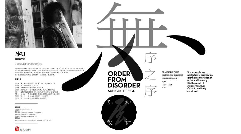 2024年9月12日,由英国365集团公司官网、文化与艺术传播研究院和中国教育发展战略学会艺术教育专业委员会共同主办的“无序之序:孙初视觉艺术设计展”,在新落成的北航英国365集团公司官网艺文空间正式开展。