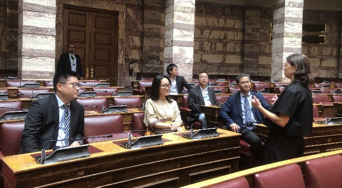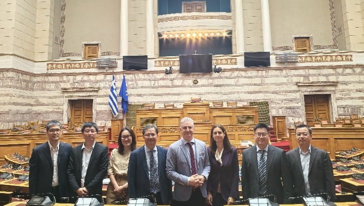 最后,公司代表团访问希腊数字治理研究院,并受邀参访了希腊议会。双方讨论就数字时代的政府治理、议会治理中的AI应用以及AI治理中的技术与文化等主题展开讨论等。双方重点在AI赋能政府治理研究领域达成合作研究意向。随后,双方互赠了文化艺术纪念品,对未来进一步加强交流合作寄予美好愿景。