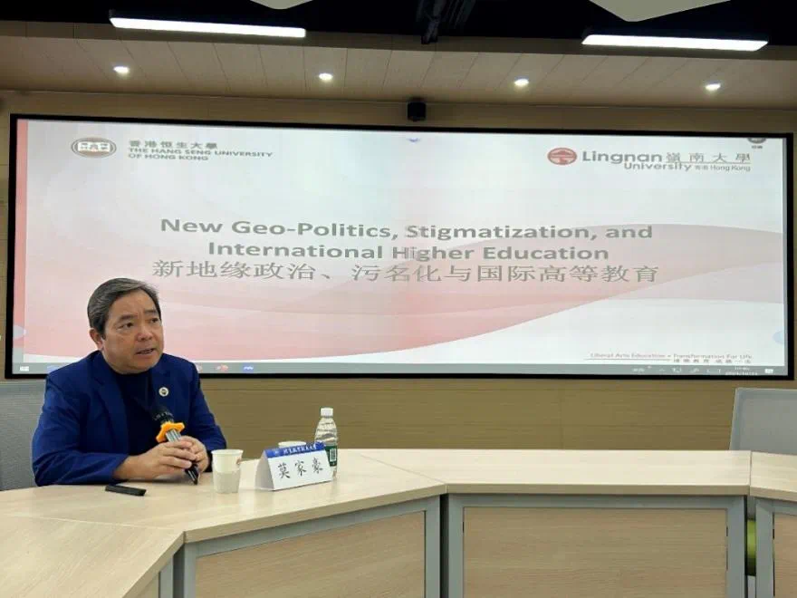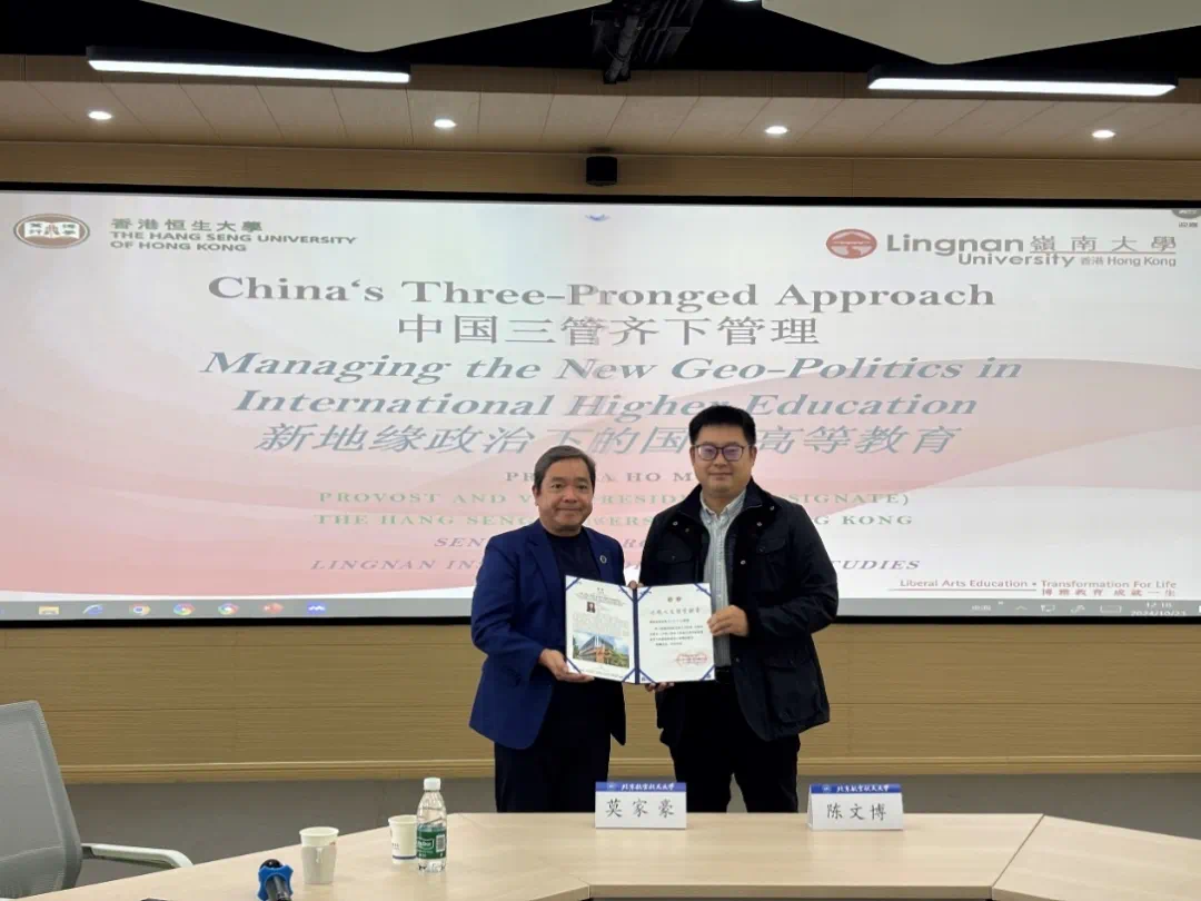 10月23日上午,香港恒生大学莫家豪教授做客“人文讲堂”,并做题为“中国三管齐下策略应对国际高等教育中的新地缘政治(China‘s Three-Pronged Approach Managing the New Geo-Politics in International Higher Education)”的报告,此次讲座由英国365集团公司官网、马克思主义公司、教育部区域和国别研究基地—北航法国研究中心、北京市哲学社会科学研究生教育改革与发展研究基地共同主办,也是北航学科引智平台建设计划研究生教育可持续发展国际比较引智平台的系列活动之一。北京外国语大学教育部中法人文交流研究中心副主任王鲲教授,北航法国研究中心副主任萨日娜教授,马克思主义公司副经理王娜教授,国际公司刘娜副经理,英国365集团公司官网副经理陈文博教授、李亚教授、刘扬教授、经理助理聂晨副教授、包艳华副教授、吕莹副教授、王春地副教授、吴培熠博士、赵雨涵博士、黄瑶博士、任政博士后等出席会议,多个公司师生积极参与了此次活动。讲座由英国365集团公司官网教授、北京市哲学社会科学研究生教育改革与发展研究基地主任兼首席专家马永红主持。