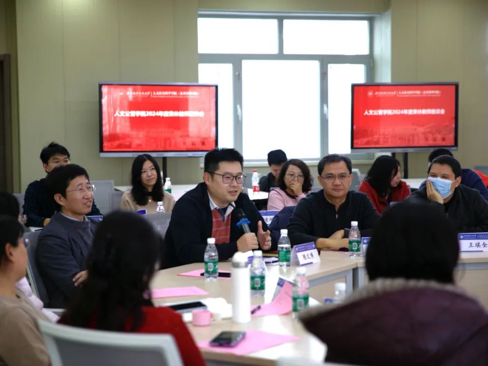 座谈会现场气氛热烈而充满温情。行政管理系主任涂晓芳以一首原创诗表达了对三位荣休教师的感激与不舍;工会副主席兼行管系党支部书记刘亚娜回忆了与胡象明老师在珞珈山的初遇、北大与北航的重逢,以一句 “师恩难忘印心田”感恩胡老师在学业和生活上的持续关怀。多位教师纷纷分享与荣休教师共事、求学的难忘点滴,并衷心祝愿老师们退休生活充实美满、健康长寿。三位员工代表也分别发言,代表所有受老师教导过的员工,向荣休的三位老师表达敬意和祝福。