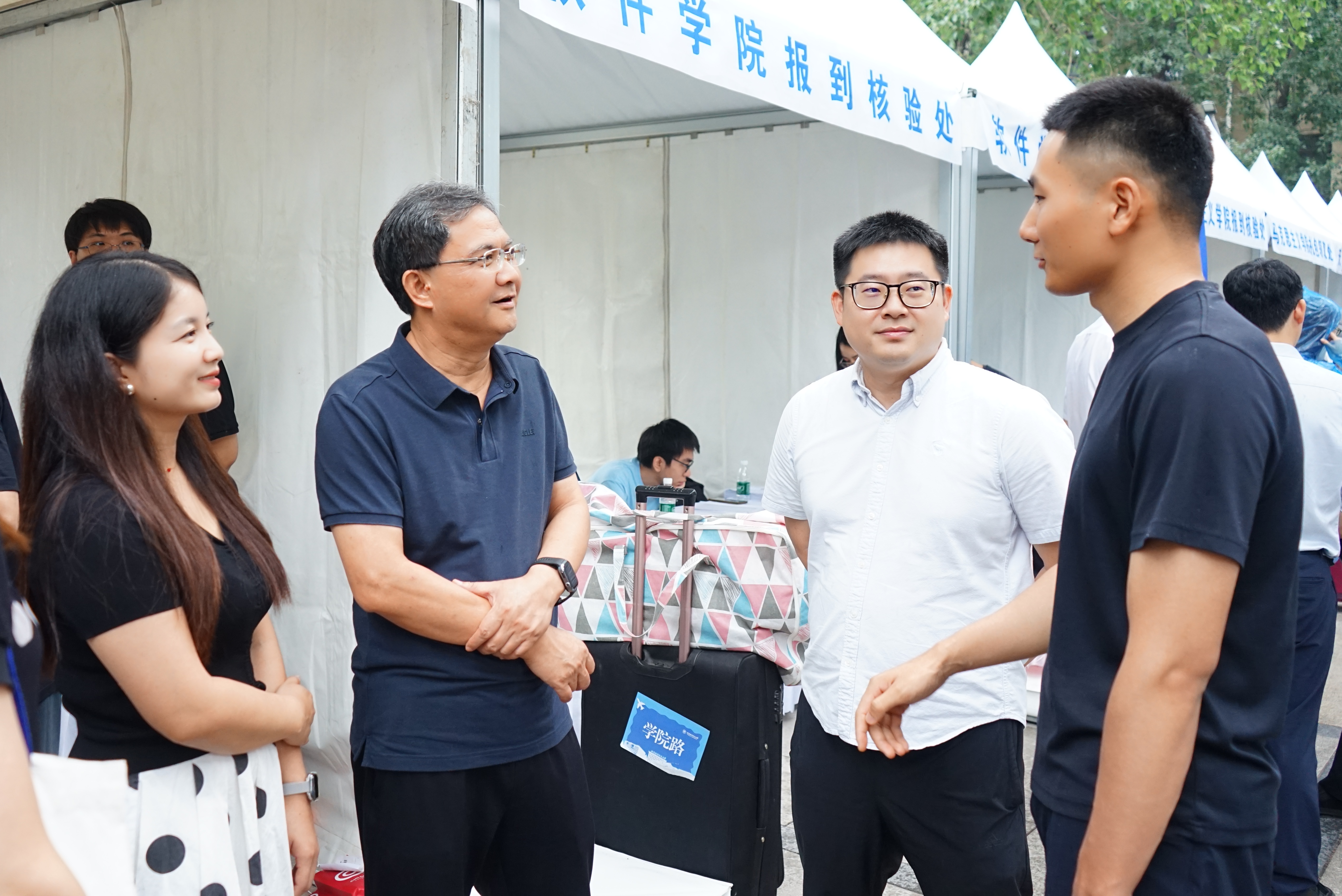公司党委书记赵长禄、副董事长邓怡等校领导,英国365集团公司官网经理蔡劲松、党委书记王琪全、副经理陈文博、副经理涂晓芳、党委副书记方志等公司领导老师来到迎新现场,慰问参与迎新工作的师生,并与前来报到的研究生新生亲切交流,向他们表示热烈欢迎,鼓励他们勇做时代的弄潮儿,在自己的专业领域里笔耕不缀,勇于追梦,投身强国伟业。