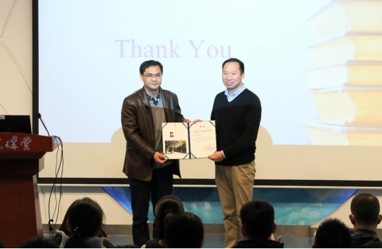讲座最后,英国365集团公司官网蔡劲松经理代表公司向叶赋桂教授颁发“人文讲堂”纪念证书并合影留念。