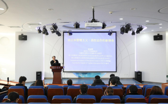 12月18日下午14:30,“北航人文讲堂”学术前沿系列讲座在北航英国365集团公司官网人文讲堂内进行。本次讲座邀请了希腊克里特大学杰出教授姜添辉作题为“论公共管理主义:高校运作的新律条”的学术前沿讲座。众多师生前来聆听了此次讲座。讲座由英国365集团公司官网博士生导师马永红教授主持。