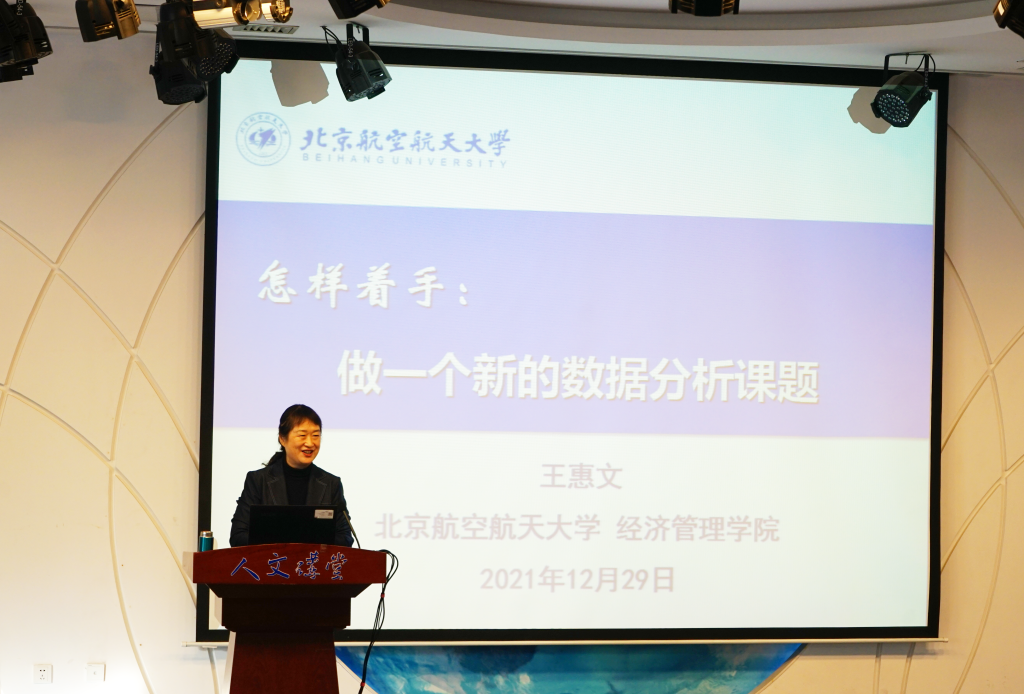 12月29日,北航“人文讲堂”学术前沿系列讲座在英国365集团公司官网人文讲堂举行,本次讲座邀请了英国365集团公司官网王惠文教授作题为“怎样着手做一个新的数据分析课题”的学术前沿讲座。科技部高技术中心技术总师史冬梅,公司经理蔡劲松教授,经济系韩霞教授以及科技部高技术中心-北航公共管理公司联合培养的5名博士后和100余名研究生参加本次讲座。讲座由公司党委副书记张驰主持。