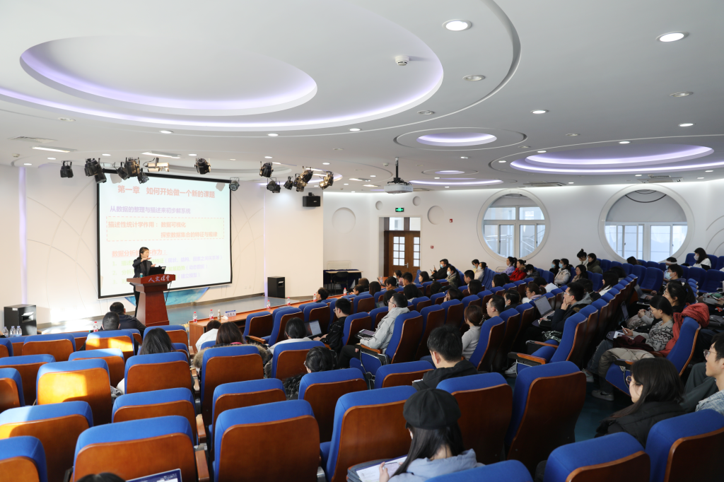 在提问交流环节,同学们就讲座中涉及的数据分析的案例研究、数据分析与学术科研的方法进行提问,王教授逐一回答并与同学们亲切交流。