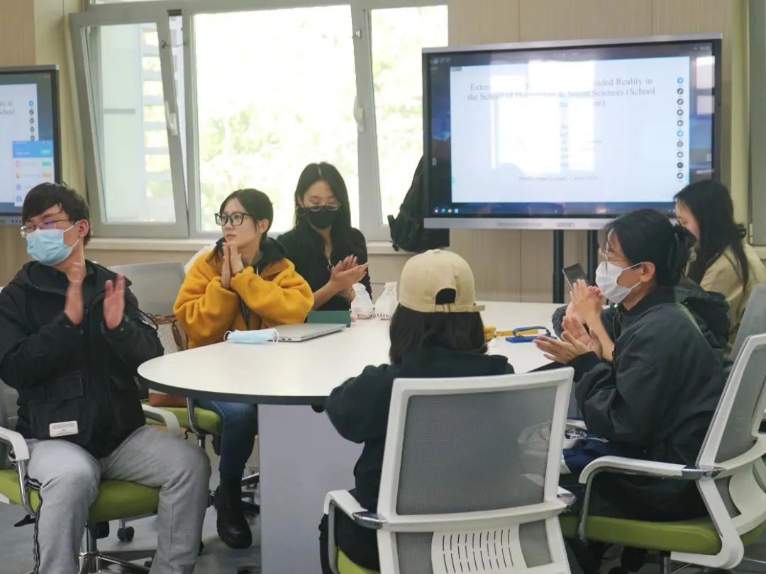 在交流环节,与会师生就“实验的研究对象”、“维度和编码设计”、“扩展现实教育的应用场景及其效果”、“虚拟现实在国内外的应用现状”等问题与黄文老师进行了深入讨论。
