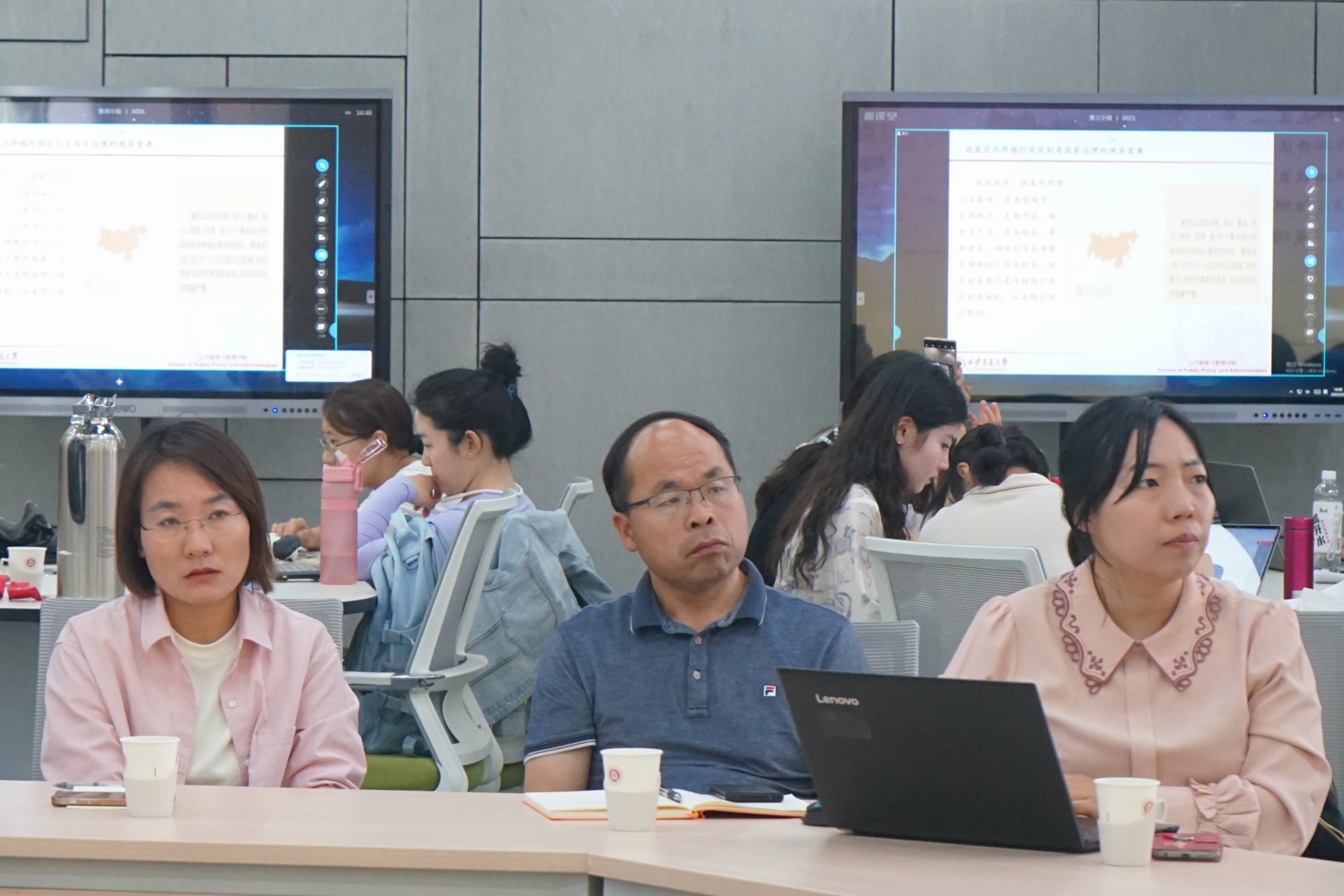 朱正威教授指出,空间治理是要素治理、政策治理、机制治理、数据治理等综合一体的全新治理模式,也是中国治国理政的传统与优势。面对新的治理模式与创新背景,需要建构一种基于空间治理的叙事范式,推动制度优势向治理效能转化。讲座中,朱教授同样提出基于治理重构区域规划实践、理解空间的叠加效应、重视提炼跨域治理经验、评估空间流动下的公共政策效能与风险、关注政区治理在复合风险条件下的运行机制、重视新技术的应用等拓展公共管理空间叙事的六大要点,与在场师生研讨交流。