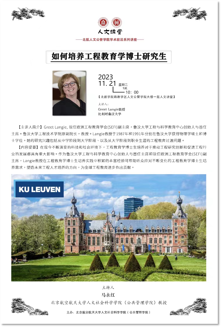 在现今不断演变的科技和社会环境下,工程教育学博士生培养对于推动工程研究创新和促进工程行业的发展都具有重大影响。作为鲁汶大学工程与科学教育中心创始人与首任主席和现任欧洲工程教育学会(SEFI)副主席,Langie教授在工程教育学博士生培养实践中积累的丰富经验可帮助听众应对不断变化的工程教育学博士生培养需求,塑造未来工程人才培养的方向,为全球工程教育进步作出贡献。