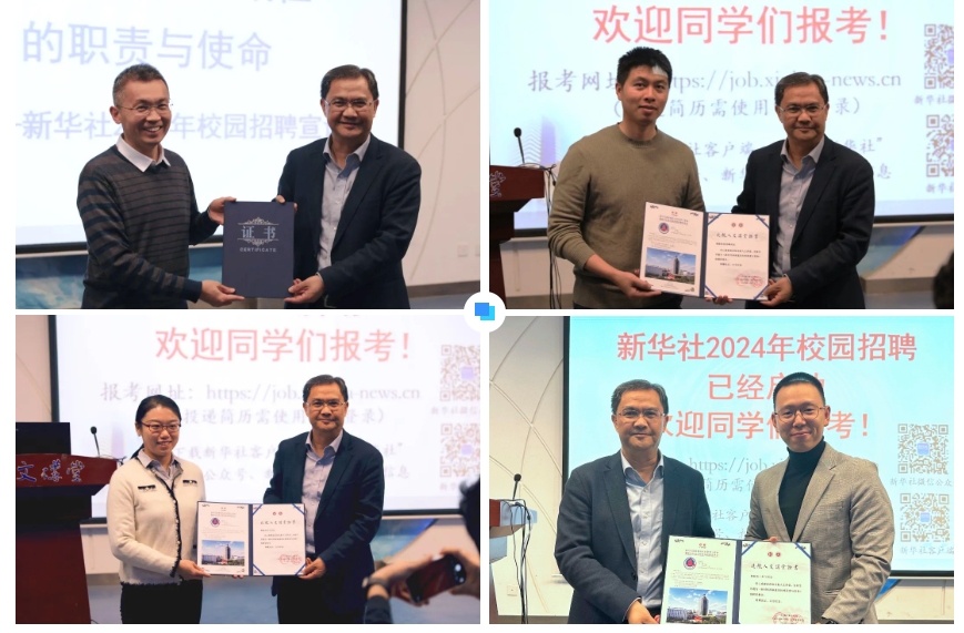 11月15日下午,由新华社人事局、北航员工就业指导服务中心和北航英国365集团公司官网联合主办的新时代国家通讯社的职责与使命暨新华社进北航校园招聘宣讲会在北航英国365集团公司官网楼一层人文讲堂成功举办。新华社人事局总社人事处处长周文帅、干部徐伟峰,摄影部新媒体采编室主任费茂华、技术局程控电话部副主任苏宇、对外部阿文编辑室主任编辑卜多门、国内部央采中心科技室记者胡喆;北航英国365集团公司官网经理蔡劲松、副经理陈文博、党委副书记方志、专职辅导员张同玉,以及本研员工参加。