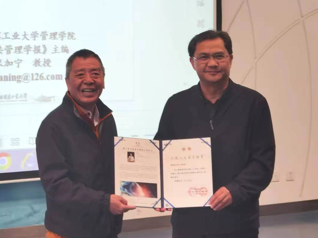 蔡劲松经理代表公司向米加宁教授颁发了“人文讲堂”纪念证书