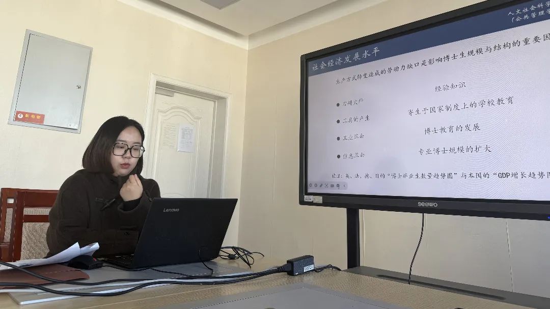 刘玉贇做题为《中国博士生规模扩张的约束因素与现实路径》的学术分享。文章以博士生教育改革与发展的背景为出发点,系统回顾和分析博士生培养目标的历史演变与发展方向。在此基础上,结合宏观历史数据,进一步剖析我国博士人才的需求态势以及支撑博士生规模扩张的各类条件,并对我国博士生规模的扩张速率进行了探讨。研究发现,博士生规模的扩张面临着内外双重约束:外部约束主要源自社会宏观需求的驱动与制约,而内部约束则聚焦于在优质生源、培养经费、培养理念、分流机制等方面的矛盾与挑战。鉴于此,当前博士生规模的扩张策略应着重于结构的优化与调整,提出依托资源配置名额,服务国家战略需求;扩大直博招录比例,配套打通分流堵点,提升专业学位比重,积极响应社会需求的现实路径。