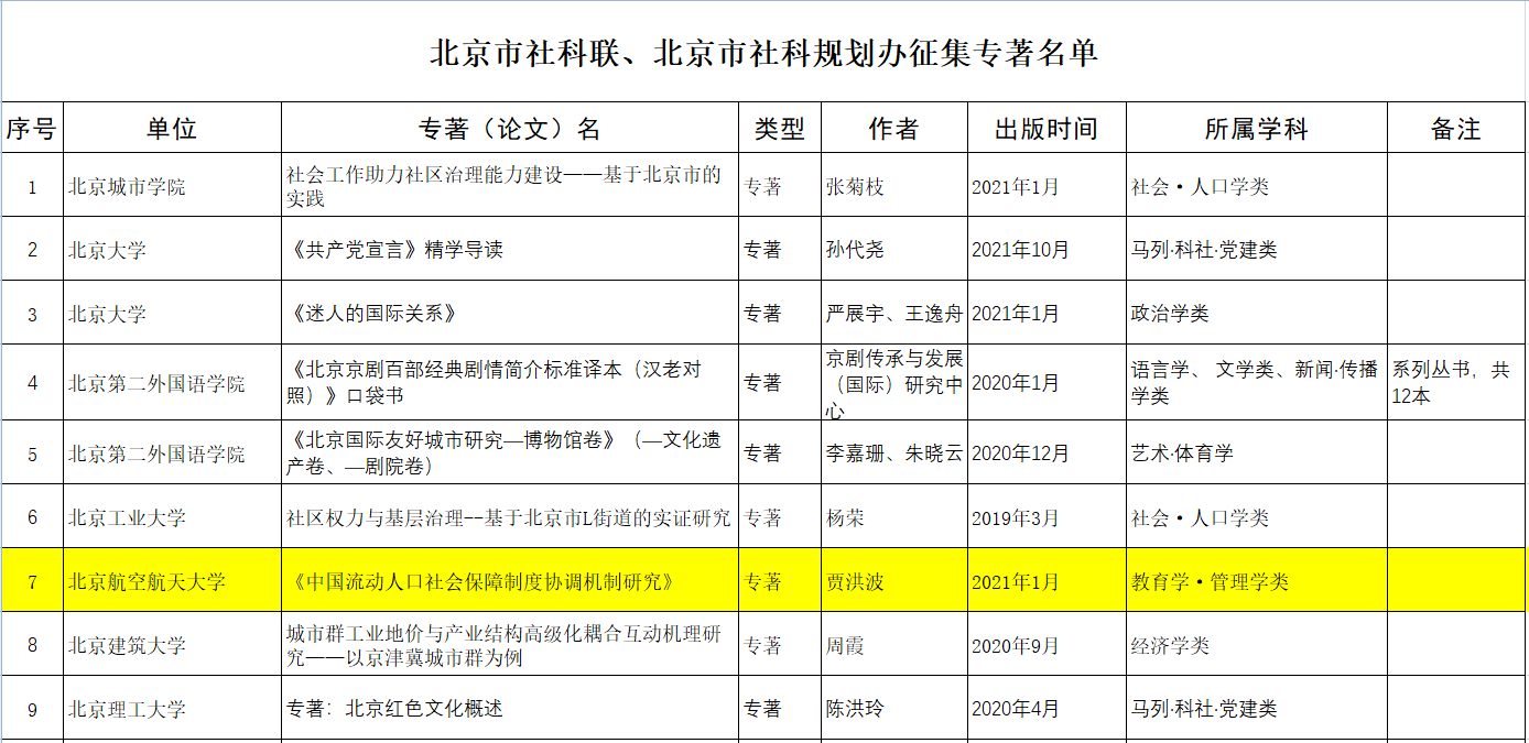 近日,北京市社科联、北京市社科规划办为更好地宣传、展示首都社科单位、专家学者的最新理论专著及其他成果,遴选近两年相关业务领域的社科研究成果(以专著和论文为主),共有32本专著入选。公司贾洪波教授2021年出版的专著《中国流动人口社会保障制度协调机制研究》入选,是英国365集团公司官网唯一入选专著。