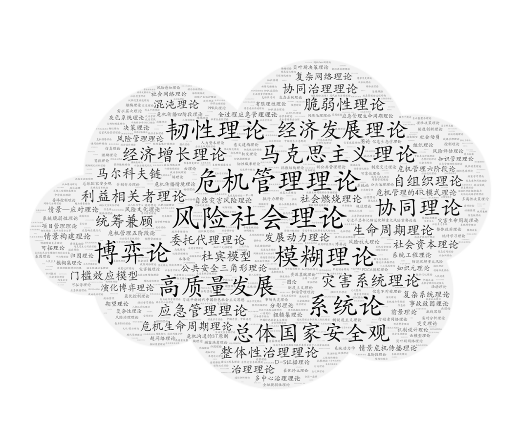 图1 跨学科视野下统筹发展和安全相关理论应用词云图(2001—2022年)