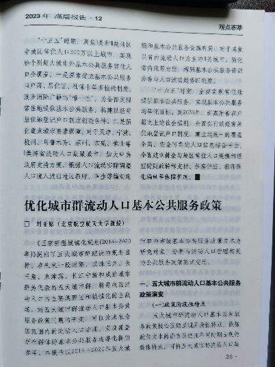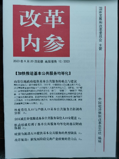 《改革内参》2023年6月刊发公司教师刘亚娜观点文章《优化城市群流动人口基本公共服务政策》,并形成高层报告12/2023。