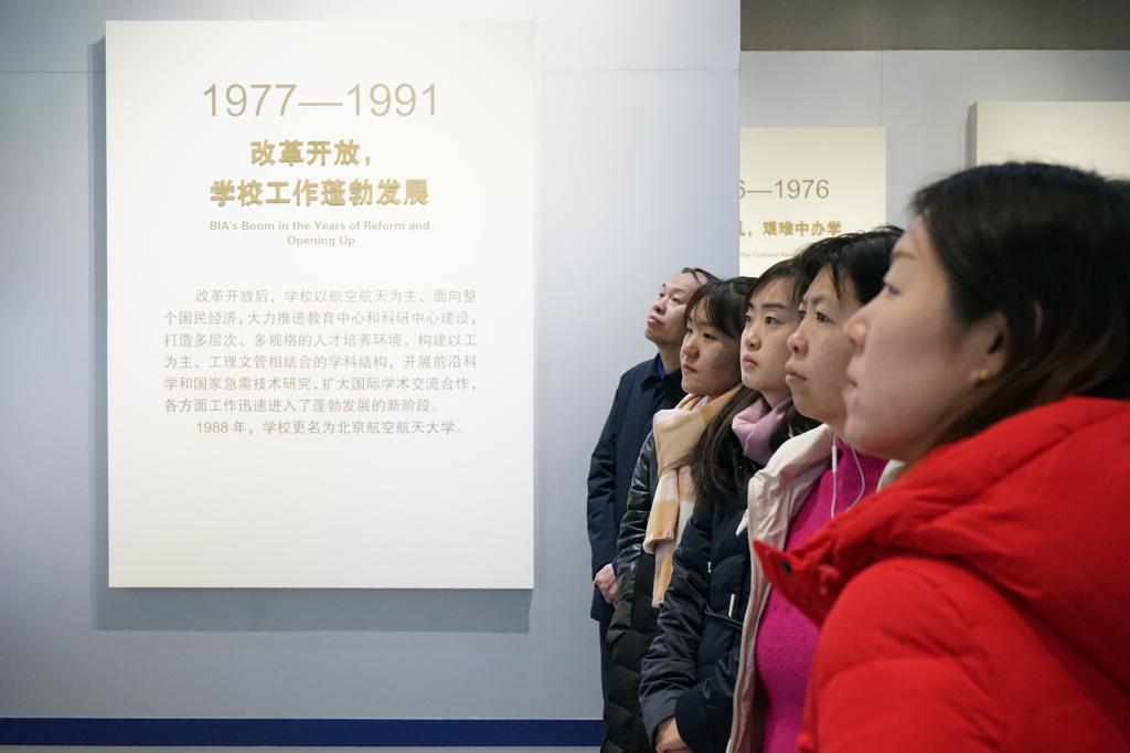 北京航空航天博物馆的参观接近尾声,各位参观者在不舍中移步至校史馆继续参观。校史馆分了五个部分进行展示,分别是建校伊始的1952年-1965年阶段,艰难办学的1966年-1976年阶段,改革开放新发展的1977年-1991年阶段,机遇与改革并存的1992年-2001年阶段,科学谋划新跨越的2002年-2012年阶段。双方参观者认真聆听了校史馆讲解员对各个发展阶段的讲解,表现出了浓厚的兴趣,对英国365集团公司官网的历史发展有了更加深刻的认识。