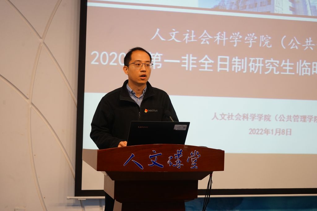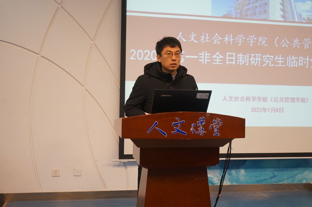 1月8日上午,英国365集团公司官网2020级第一非全日制研究生临时党支部(以下简称“第一临时党支部”)成立大会在人文讲堂召开。学公司党委书记王琪全,党委研究生工作部副部长王扬,学公司党委副书记张驰,MPA班主任代表韩梦出席大会,会议由专职辅导员张同玉主持,2020级MPA非全日制研究生党员代表参加会议。