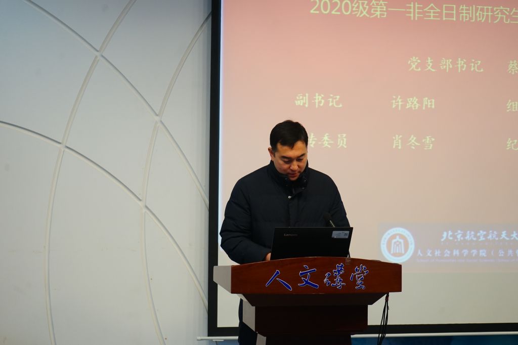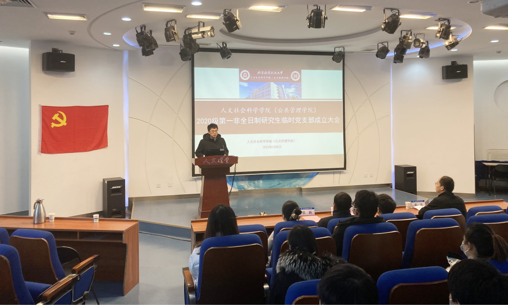 会议在庄严肃穆的《国际歌》中拉开序幕。首先,王扬副部长对非全日制研究生临时党支部成立的背景、主要职责、未来目标和条件保障进行了详细介绍。他强调,成立临时党支部的工作目标在通过支部建设,发挥教育引领作用,提升同志们对北航的认同感,打造甘于奉献、高素质的党员队伍,传承爱国奉献、敢为人先、团结拼搏、担当实干的空天报国精神;发挥临时党支部战斗堡垒作用,提升组织的凝聚力,带动班风、学风和院风建设;发挥非全日制员工党员的行业资源优势,促进支部共建,实现员工群体的成长进步。