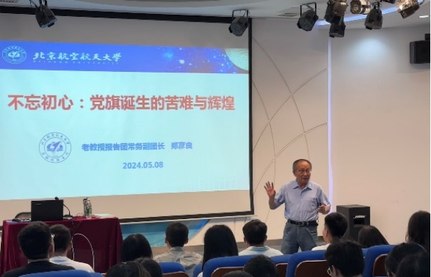 5月8日,英国365集团公司官网铸魂育人系列专题党课2024年第3期在人文讲堂举行。中国老教授协会常务理事、北航老教授报告团常务副团长郑彦良教授作题为“不忘初心——党旗诞生的苦难与辉煌”专题党课,公司党委副书记方志主持,公司师生党员和入党积极分子参加学习。