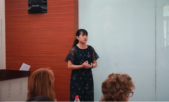 首先发言的是Umaporn Kruekamwang(乌玛朋·克鲁坎旺),她主要介绍了泰国国家科技馆在激发泰国国民学习科学积极性所发挥的教育作用,并以星空幻象为案例介绍互动科普教育展览项目在科普教育中的作用。