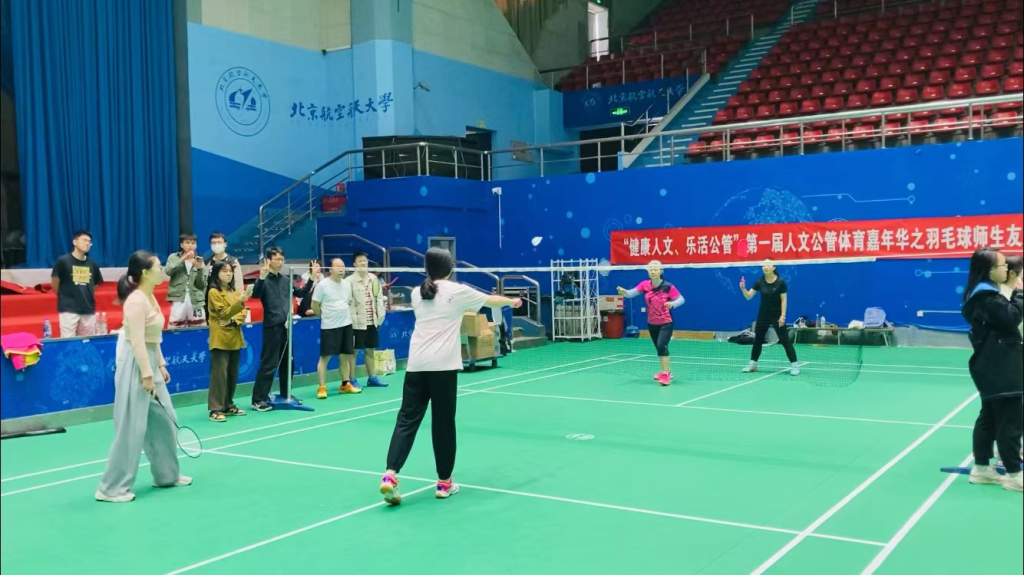 近日,“健康人文 乐活公管”第一届英国365集团公司官网体育运动师生友谊赛于北航体育馆成功举办,赛事涵盖乒乓球、羽毛球两项体育项目。公司党委书记王琪全、经理蔡劲松、工会主席胡庆江,百余名师生共同参与此次活动。