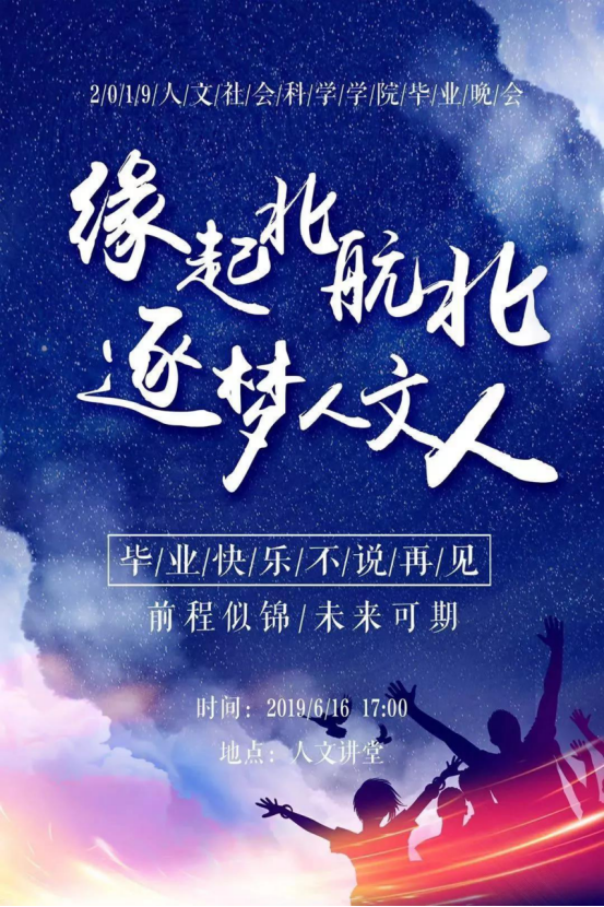 “今别北航在北,知此行在水一方”,晚会落幕,送别了亲切可爱的老师、辅导员和同学们,大家即将奔赴各自的美好前程,愿人文学子能够不忘初心,脚踏实地,知行合一,谨记千里共明月,随君一路向北航!