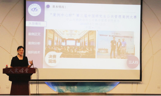 MPA任课教师代表马琪做了题为《全国MPA案例大赛的体会与思考》的报告。她结合案例大赛情况指出,公司团队与获奖团队存在组织支持、团队建设、经验、战术等方面的差距。随后,马老师详细阐述了自己对参赛的案例正文、案例分析和组织战术的思考,并建议加强员工选拔、成立双(多)导师配合制、完善信息共享和学习培训。