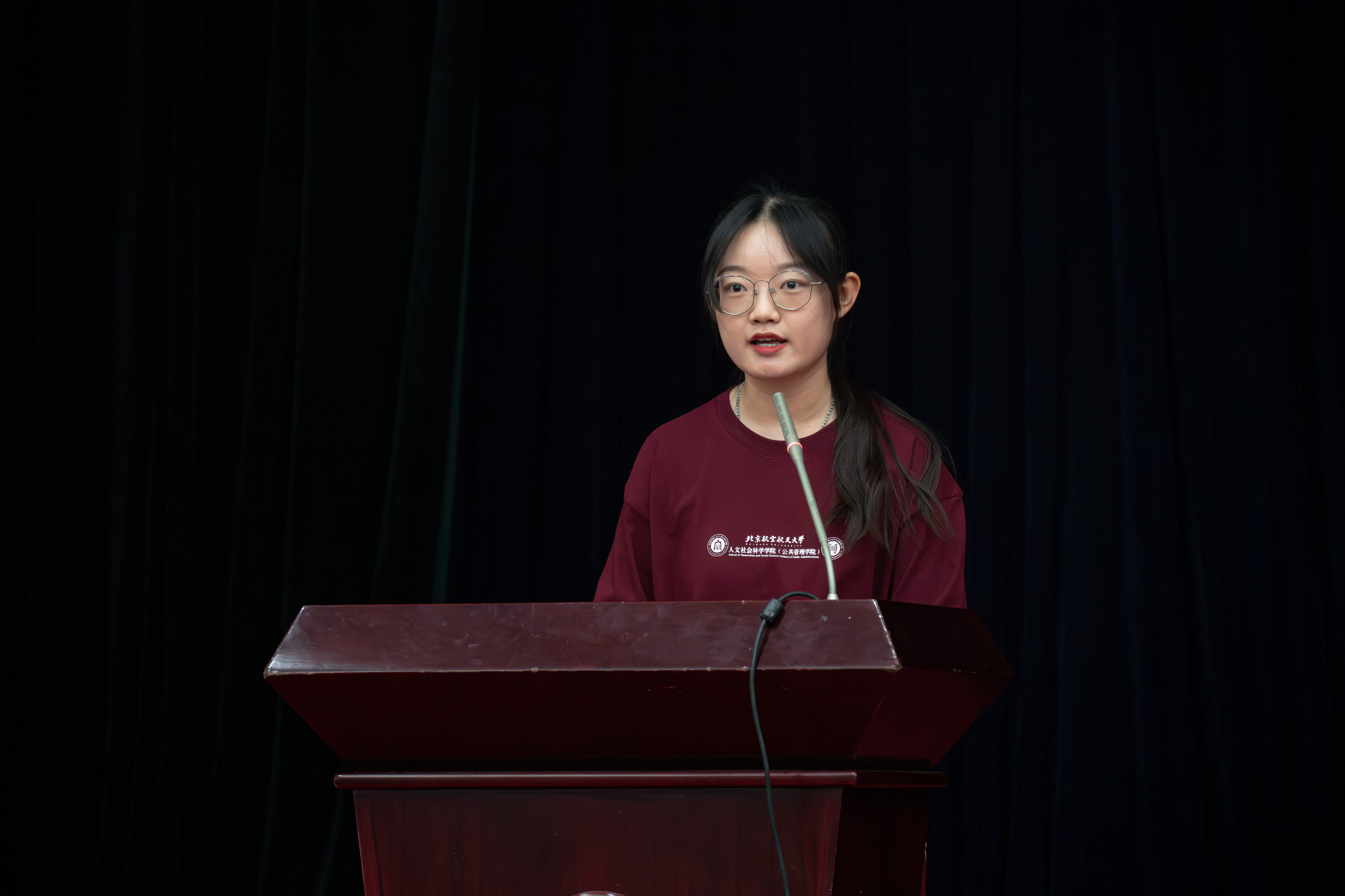 2023级硕士研究生孔令萌同学作为新生代表发言,她讲述了本科4年与北航同行、与人文公管同行的荣耀时刻,于高山之巅,方见大河奔涌,于群峰之上,更觉长风浩荡。身处新的起点,她鼓舞大家躬耕田野,用脚步丈量祖国大地;脚踏实地,用学识贡献青春力量;胸怀寰宇,用内心感悟时代脉搏。