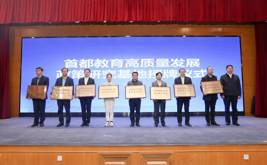 研讨会上,北京市委教育工委副书记王达品为八个“首都教育高质量发展政策研究基地”授牌,公司经理蔡劲松等政策研究基地负责人代表接受基地铜牌。